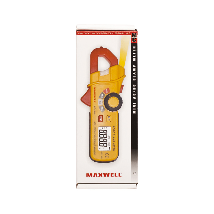 AC/DC Current Clamp Meter allowing you to read current, voltage and frequency without any direct contact. The built-in LED light provides an easy measurement reading in any situation. Small and massive design.
